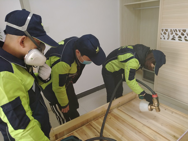 格瑞乐环保工作人员到达客户家中,对现场如电视、铁器等进行覆盖后,开始作业,用5个小时做完整个施工流程,并且关闭门窗。徐先生全程陪同,格瑞乐用透明式作业赢得了客户的信任。