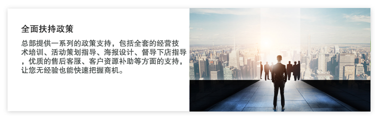 传播与教学,双管齐下。全方位、立体化的推广支持政策,同时给经销商进行推广指导。帮您早日进入财富殿堂。