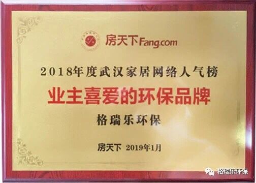 格瑞乐环保很荣幸被评为2018年度武汉家居网络人气榜——业主喜爱的环保品牌,这即是对我们的一种肯定也是对我们的一种认可,在往后的日子里,我们会更加出色更加努力的为您服务。