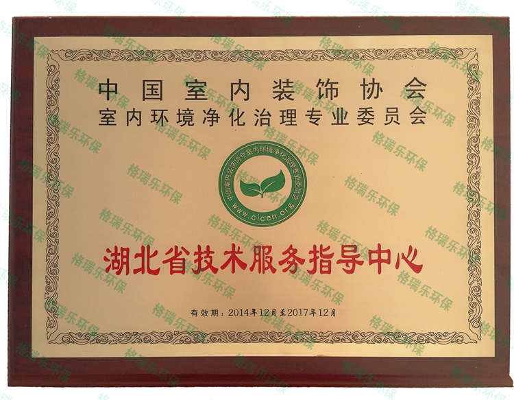 格瑞乐环保中国室内装饰协会室内环境净化治理行业专业委员会湖北省技术服务指导中心