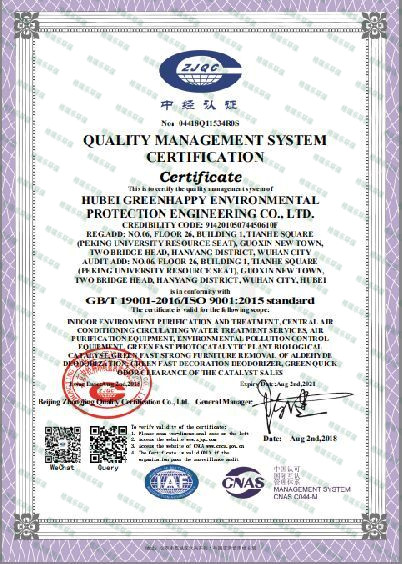 格瑞乐环保 - ISO9001 质量管理体系认证